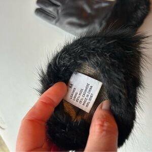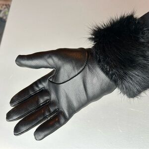 Experience elegance with these luxurious black leather gloves, featuring a plush fur cuff for added warmth and style. Perfect for any sophisticated wardrobe.