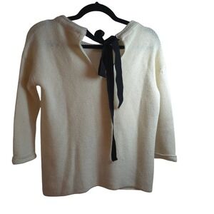 Ulla Johnson Alpaca Wool Blend Ivory Knit Sweater Small Bow Back Pocket Detail