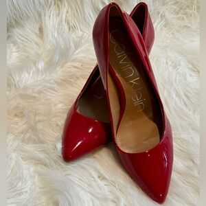 Chic and striking red heels. Perfect for elevating any look. Sleek design by Calvin Klein.