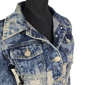 Item: DAZI Distressed Denim Jacket Womens Large Blue Shredded Y2K Grunge