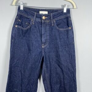 River Island Women's Dark Blue Denim Barrel Jeans Button Fly High Rise US 2 UK 6