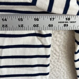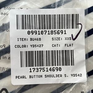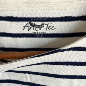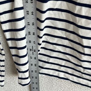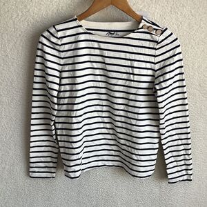 J Crew Striped Pearl Button Shoulder Artist Tee Womens XXS White Navy Blue