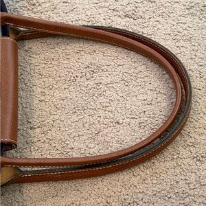Longchamp Elegant Purple Tote Bag with Brown Accents