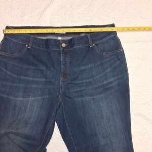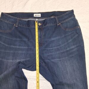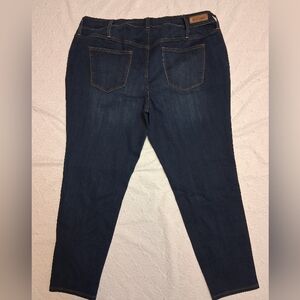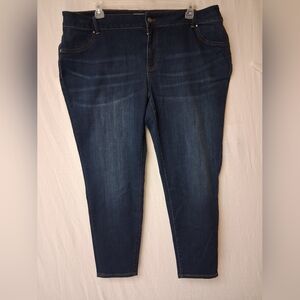 Upgrade your style with these dark blue skinny jeans. Designed for a sleek fit, they offer both comfort and elegance.size 24W used in excellent condition