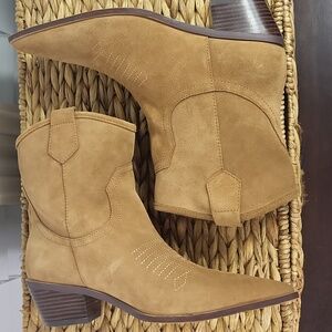 NWT Free People and Intentionally Blank Kari Tan Suede Western Boots. Size 9