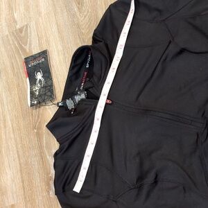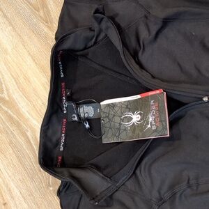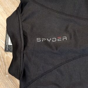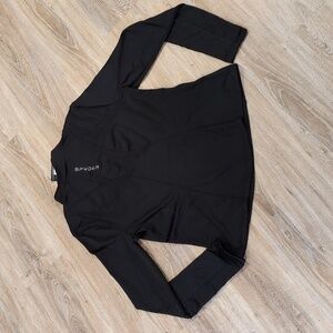 Stylish black long sleeve by Spyder. Perfect for versatile wear! Has a 1/4 zipper and thumb holes at the end of the sleeves. Does NOT have pockets.