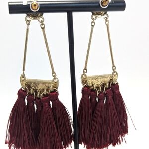 Vintage-inspired tassel earrings in a rich burgundy hue.
