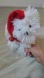 Adorable white plush dog toy with a festive red hat. Perfect for pet playtime or as a cuddly companion.