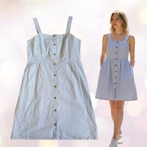 2 For $20 - J. Crew Blue & White Pinstripe Cotton Button Down Dress Size 12
