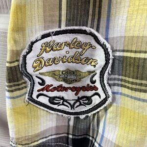 Harley Davidson Women's Yellow Plaid Garage Button Shirt Motorcycles Biker Sz. M