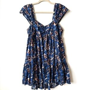 Free People Pattern Play linen blend mini dress in a blue floral print.