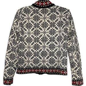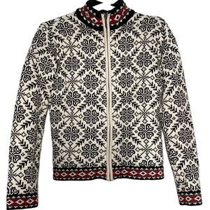L.L. Bean Fair Isle Sweater Coat Cream White XS