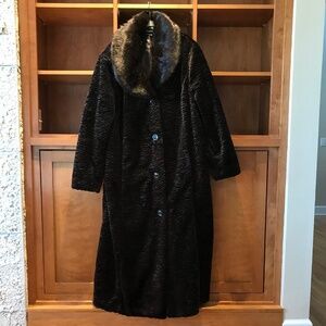 ASHRO LONG CHOCOLATE BROWN FAUX FUR COAT