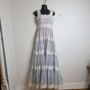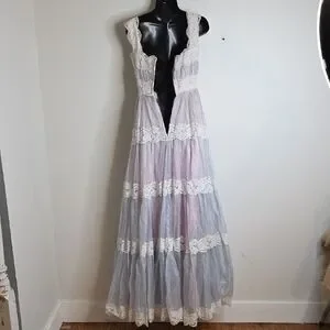 Elegant Lace Trimmed Maxi Dress VINTAGE, PROM , HIPPIE BOHO