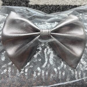The Loungefly Hard Tag Minnie Mouse sequined zippered wallet with wristlet strap is a stylish accessory featuring the iconic character Minnie Mouse. The wallet is made of silver sequins, adding a touch of glamour to any outfit. With an 8" length and 5" width, this wallet is both practical and fashionable, perfect for men who want to showcase their love for Disney and Minnie Mouse. The wristlet strap adds convenience and versatility, making it easy to carry the wallet on the go.