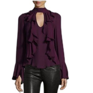Cinq a Sept Sia Choker Ruffled Silk Blouse in Burgundy XS NWOT