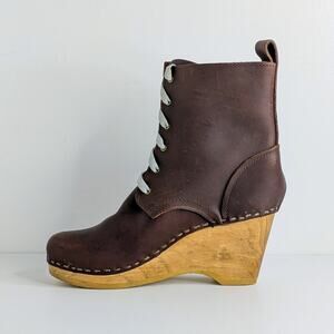 No. 6 Store Ankle Boots 37 Brown Leather Lace Up Wedge Bohemian Scandi Chic