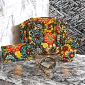 Vera Bradley Glenna Shoulder Bag, Wallet, Sunglass Case & Lanyard Shower Flowers