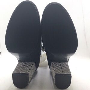 Add style to your wardrobe with these stunning black ankle boots from Daisy Fuentes. These boots feature a solid pattern with a round toe and a zip closure. The boot shaft style is ankle and the heel style is a block with a rhinestone-covered heel. The heel height is approximately 3.75” and shaft height is 5”, perfect for adding a touch of glam to any outfit.