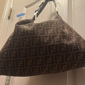 Fendi ZUCCA LARGE Hobo in Tobacco Tan and Black Logo Tote.