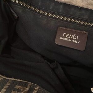 Elegant Fendi tote with signature logo design. Features tan and black hues.
