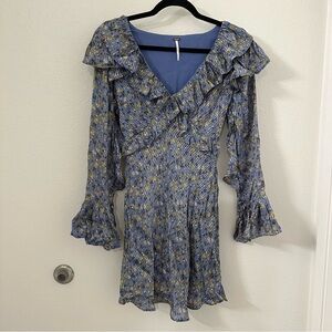 Free people Sweetest Thing Mini Dress in Midnight Cowboy size 0 long sleeve