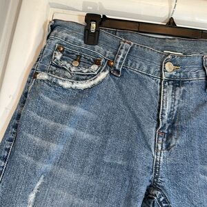 True Religion Cotton Denim Distressed Blue Jean Shorts 36 waist like new