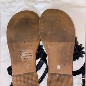 Elegant black sandals featuring floral designs. Ideal for everyday wear.
