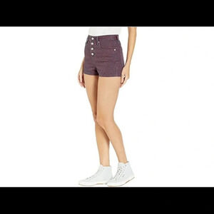Denim shorts feature a modern high rise and mini length.