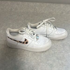 Nike Kids White Air Force 1 With Custom Cheetah Paint Size 3.5Y. Same as Womens 5