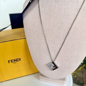 Chic Fendi necklace in silver with crystal embellishments. Brand new, full set. Very giftable.
