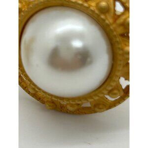 Anne Klein Vintage Gold-Tone Faux Pearl Clip-On Earrings Elegant Round READ