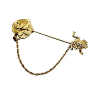 Vintage Trifari Gold Plated Frog and Lily Pad Stick Brooch