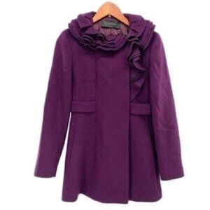 Elie Tahari Womens Lined 100% Wool Ruffle Trim Long Line PeaCoat Size XS. In excellent condition, no flaws. Fully lined with snap button closure. Laying flat measurements: 30” long, 19” across armpit to armpit. 24” sleeve.