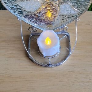 Elegant Heart-Shaped Stained Glass Angel Art Metal Tea Light.