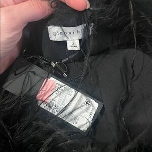 Gianni Bini black feather strapless jumpsuit size 2 NWT