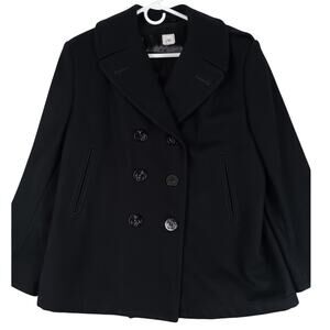 Navy Issue Pea Coat Womens 16 Short Dark Navy Wool Cropped Short Double Breasted