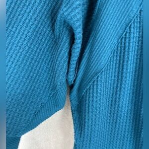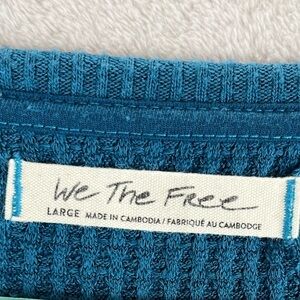 WE THE FREE Aqua Thermal Shirt Large Top Long Sleeve Oversized Slouchy Raw Hem