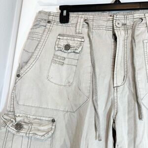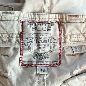 Private Blue Utility Cream Colored Cargo Cotton Utility Shorts 38 waist like new