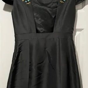 Gorgeous gray Tibi dress in a size 2. 100% silk and fully lined. A-line silhouette with an incredible multicolored jeweled and beaded design across the neckline and chest. This dress is so unique and special! Open back with a strap across the neck as closure. Embellishments continue from the front of the dress to the back of the cap sleeves as well. Hits above the knee. Absolutely stunning - perfect for a wedding, special event, or girls' night out!