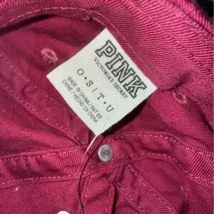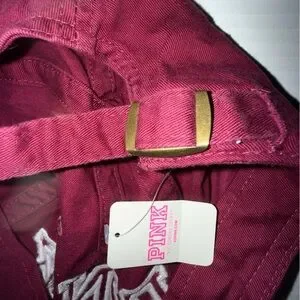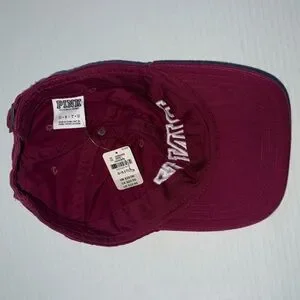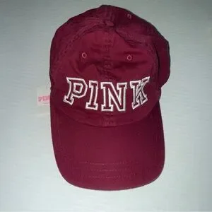 NWT PINK VICTORIA’S SECRET BURGUNDY BASEBALL CAP, MAROON, SIGNATURE LOGO HAT, WINE RED, WHITE COLLEGIATE LETTERING, NEW