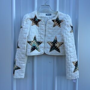 Tags: puffed sleeves bomber jacket embroidered artsy art to wear quilted arts and crafts trending cropped western rodeo career work wear office Texas fall