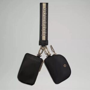 Lululemon athletica Dual Pouch Wristlet gold black bag purse gym keychain