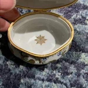 Vintage French Floral Ceramic very ornate Limoges trinket box w hinged lid