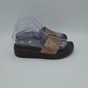 Donald Pliner Fifi Slide Platform Thong Sandal Brown with Bronze Size 6M EUC