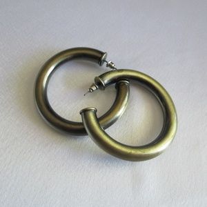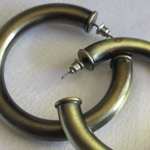 Olive pierced hoops. Approx. measurements are: 2 ¼” W, and ¼” thick. Necklace to match in listings.