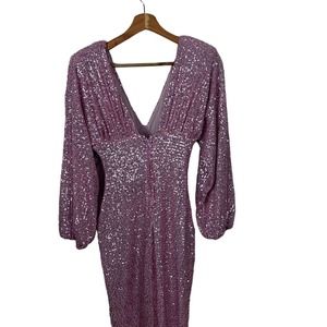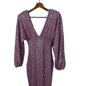 Fashion Nova Kiss Me Under The Moon Maxi Dress Pink Sequined XS Flawed. NWT. *****IS PINK BUT PICTURES MAKE IT LOOK MORE OF A PURPLE*****