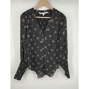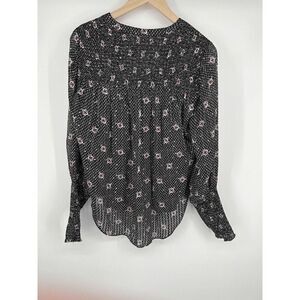 Veronica Beard Maree Size 6 Black Floral Silk Blouse Smocked Bishop Sleeve