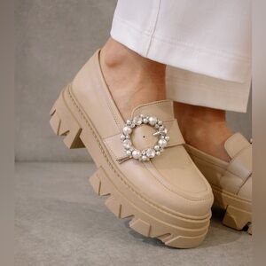 Alohas Women’s Trailblazer Crystal Ivory Leather Loafers Like New Sz EU39 US 8.5