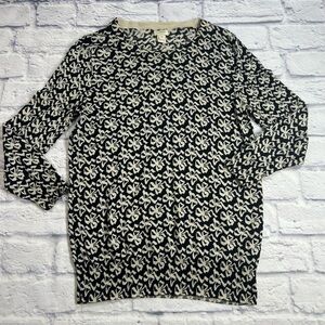 J. Crew Black and Cream Bow Knit Lightweight Sweater. 100% Wool. Coquette Girl.